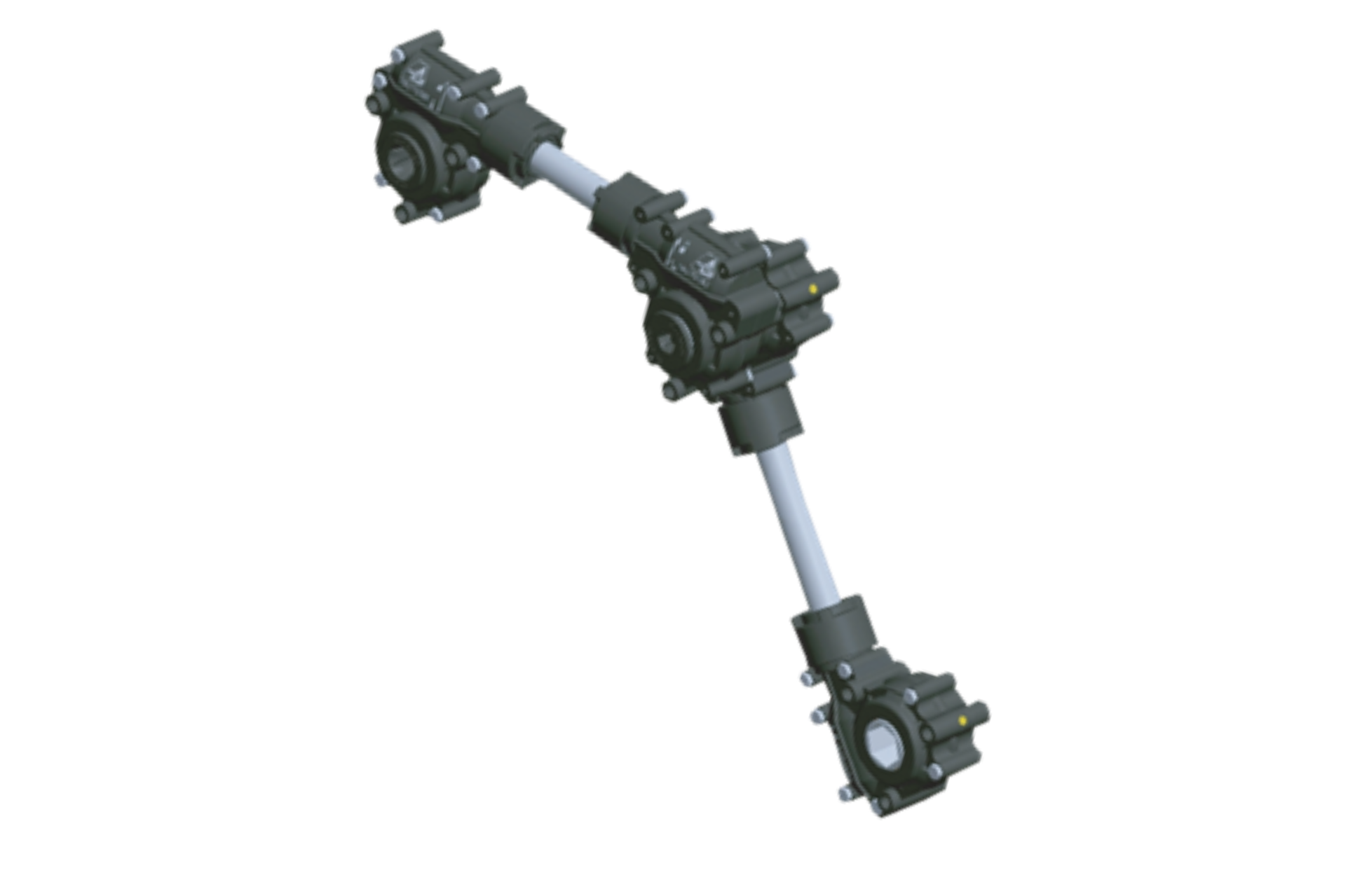 Composto por eixos de transmissão rígidos, que se articulam entre si por meio de caixas de transmissão, proporcionando segurança de rotação visto que seus componentes internos são protegidos por vedação que impossibilita a entrada de palha e água.